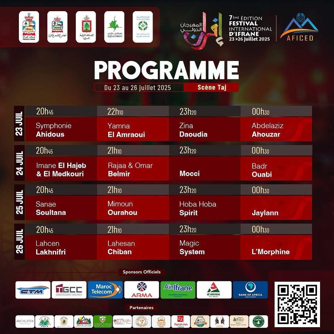 انطلقت يوم الأربعاء 23 يوليوز 2025 فعاليات المهرجان الدولي لمدينة إفران في نسخته السابعة، حيث ضرب لجمهوره موعداً جديداً مع باقة من الفقرات المتميزة والمتنوعة، الفردية والجماعية.