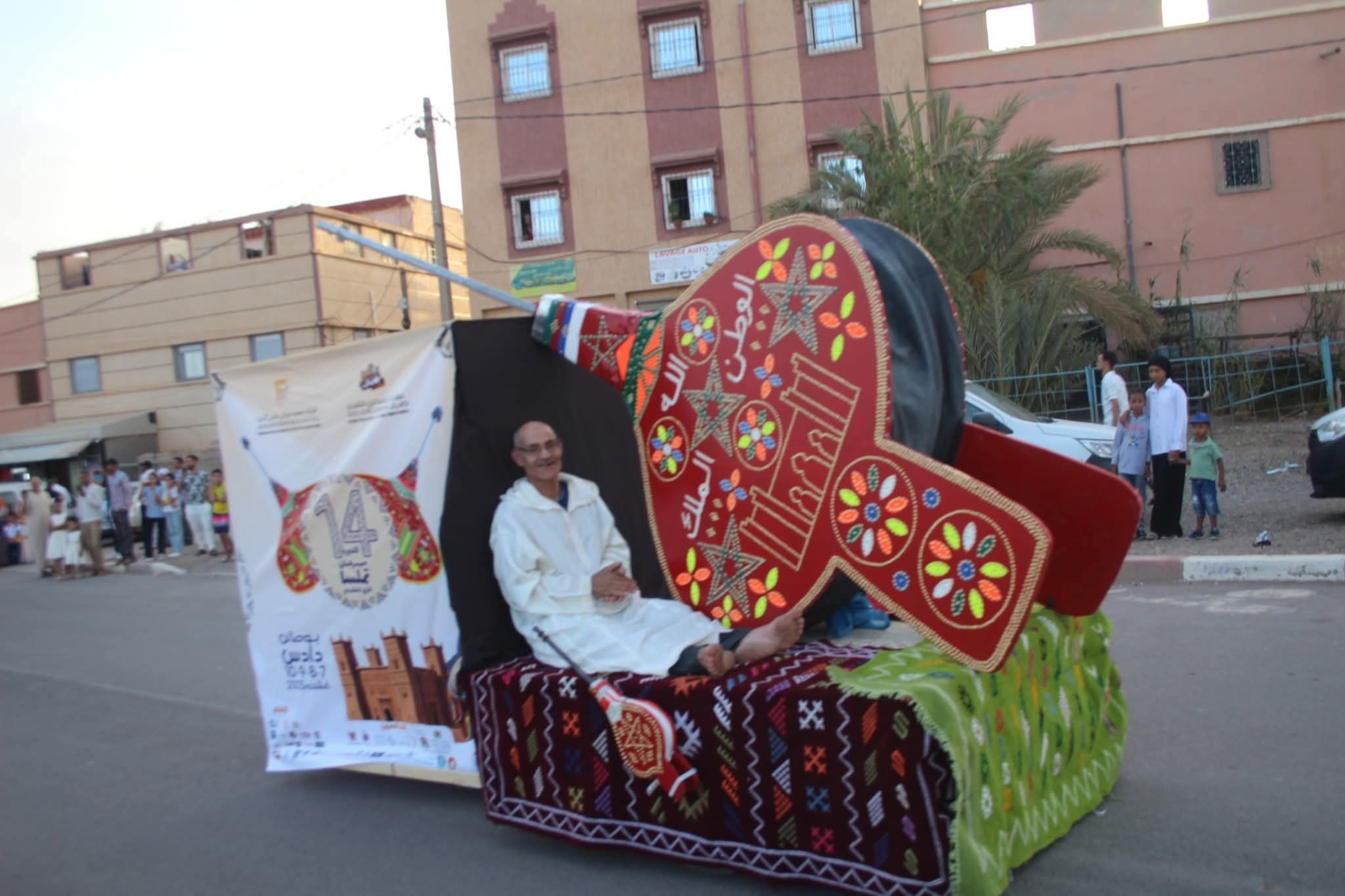 انطلق موكب الكرنفال من المؤسسة الفندقية شلوكة، مخترقًا شارع ولي العهد وشارع محمد الخامس، وصولًا إلى ساحة الجيش الملكي حيث كان في انتظار الفرق المشاركة وفد رسمي وسط حشود جماهيرية غفيرة قدمت من مناطق مختلفة. تميز الموكب بعروض فنية جمعت بين الأهازيج والرقصات الشعبية، ومجسمات فنية أبدعتها أنامل الحرفيين المحليين، في توليفة بصرية وموسيقية عكست أصالة التراث وجمالياته.