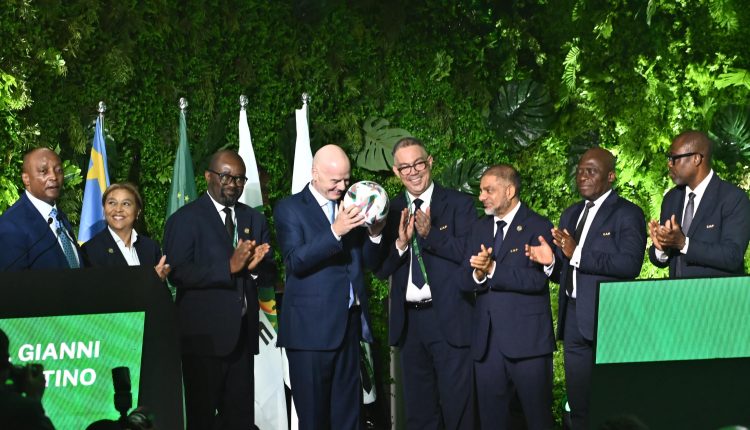 رئيس الإتحاد الدولي لكرة القدم جياني إنفانتينو يتسلم الكرة الرسمية لكأس أفريقيا المغرب 2025