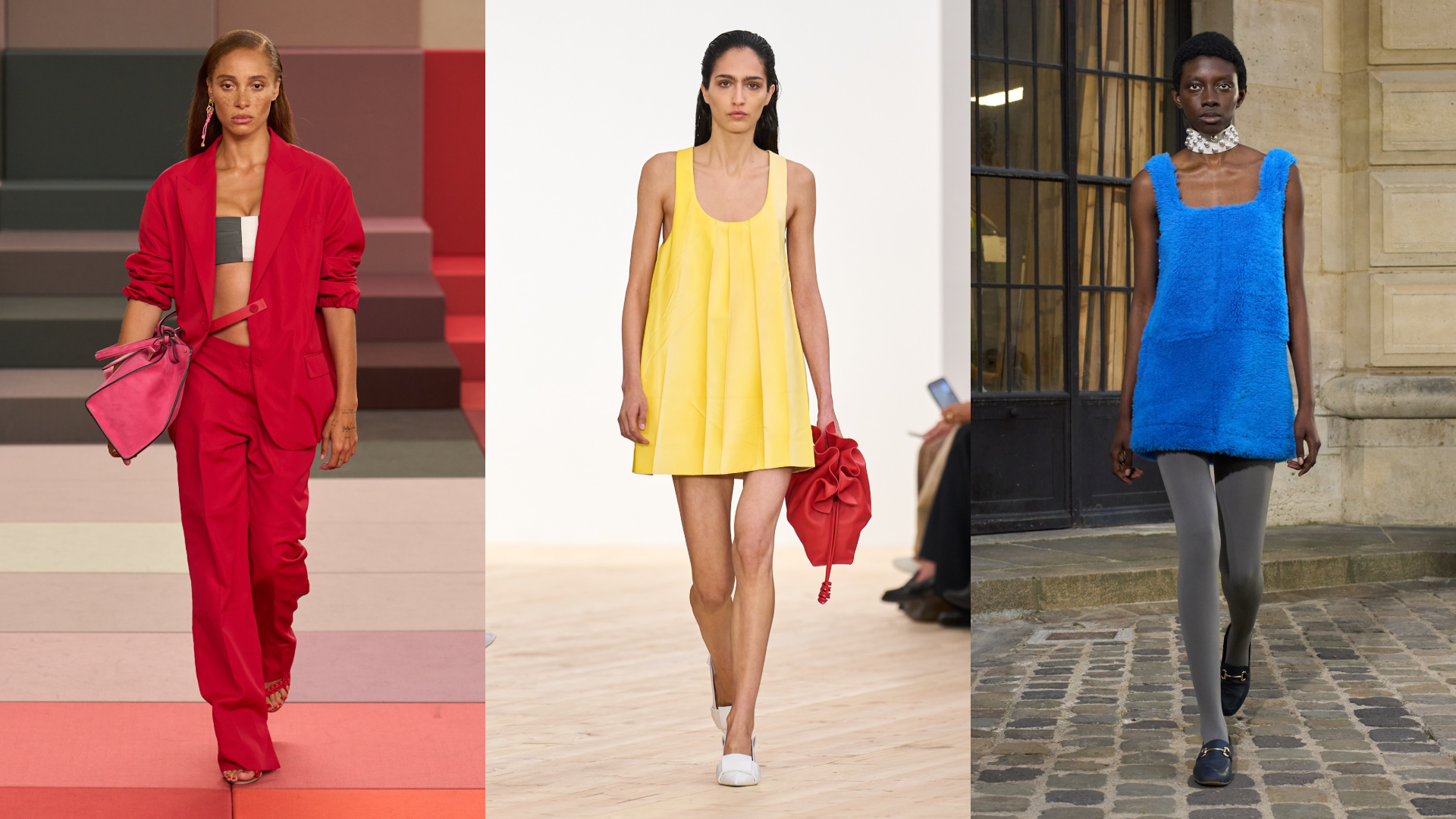 بينما ارتبط الربيع سابقاً بنقشات الزهور الناعمة، جاءت مجموعات 2026 لتكسر هذه القاعدة. فقد شهدت عروض Dior، Fendiو Loeweانفجاراً في الألوان الصارخة: الأصفر الساطع، الأحمر الناري، والأخضر العشبي.