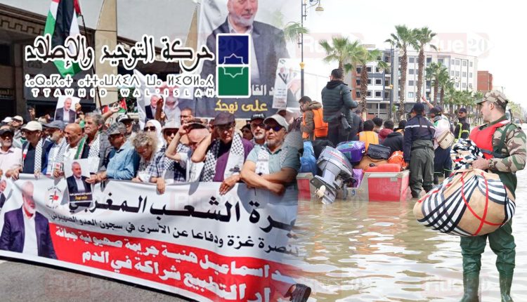 في الوقت الذي تغرق فيه مجموعة من المدن بالمملكة المغربية بسبب الفيضانات،يعيش المغاربة ومؤسسات الدولة حالة من التضامن والاعتزاز بالانتماء لهذا الوطن …بقاومون ويسابقون الزمن لاجلاء كل المتضررين والنجاح في انقاد الارواح بالعلامة الكاملة،بشهادة مختلف دول العالم ،للاسف الشديد تطالعنا حركة التوحيد والاصلاح بخبر التضامن مع غزة بفلسطين ،أيام غضب واحتجاج أيام 6 و7 و8 فبراير 2026، شعارات فارغة واستهلاكية في سياق انتخابي رخيص،ليبقى السؤال الذي يفرض نفسه بالحاح أين كانت هذه الشعارات من فيضانات تطوان و القصر الكبير وسيذي سليمان وسيذي قاسم …؟،وأين كانت الدعوة للتعبئة العامة من أجل جمع المساعدات؟ وأين كانت البلاغات الإنسانية؟