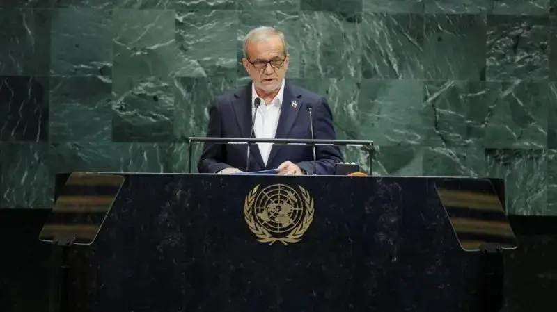 وقال إن ذلك حدث “بدعم كامل من النظام الأكثر تسليحاً على وجه الأرض، وبحجة الدفاع عن النفس”، وتساءل بيزيشكيان أمام الجمعية العامة “من يثير القلاقل لشعوب العالم؟”.